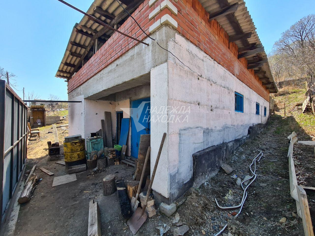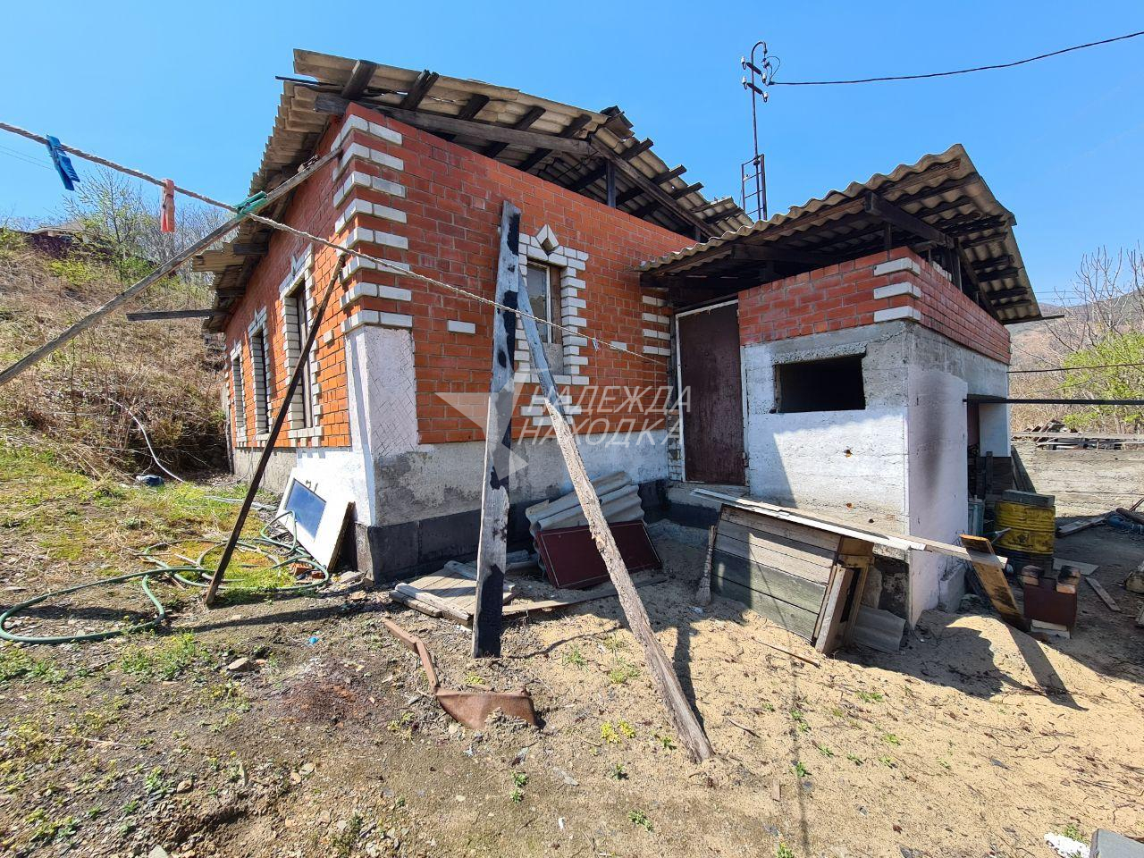 Недостроенный дом в стадии возведения стен второго этажа. В наличии весь объем стройматериала для возведения стен второго этажа (кирпич). Дом находится в конце улицы.
