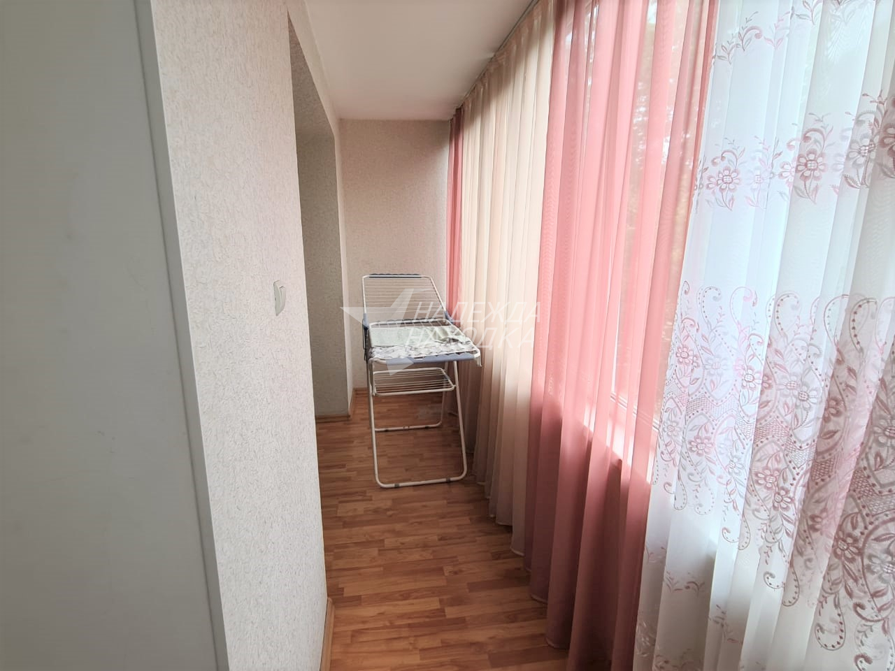 Застекленная лоджия совмещена с кухней и гостиной. Пластиковые окна, Стены выровнены, Линолеум, Межкомнатные двери